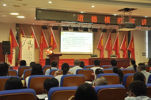 武夷煙葉開展道德模范巡講活動 9月17日下午,武夷煙葉在公司五樓會議室開展道德模范巡講活動,活動邀請了南平市第二屆“助人為樂”道德模范、2011年度“中國好人”、福建省2015—2017年度省級文明家庭獲得者伍夏云女士為員工巡講。 活動現場 ,伍夏云女士用樸實的話語,向員工講述了自己從1986年幫助15歲失足少年,開始了行善之路的一樁樁、一件件感人故事。對于伍夏云來說,她已經記不清做了多少好事、幫助了多少人。伍夏云說“做一件好事不難,難的是一輩子做好事,但只要堅持做好事、做善人,就一定會發現自己的價值和人生的意義。” 伍夏云的講話獲得了現場員工的陣陣掌聲。大家聆聽了伍夏云女士的故事后,紛紛表示巡講活動使大家倍受教育和啟發,也近距離感受到了道德模范的獨特人格魅力,要向道德模范學習,傳播正能量。此次活動在公司內營造了崇尚道德模范,學習道德模范,爭做道德模范的熱潮。 本次活動由福建武夷煙葉有限公司、邵武市煙草專賣局(分公司)、南平煙草物流有限公司聯合舉辦。(楊紅梅) |