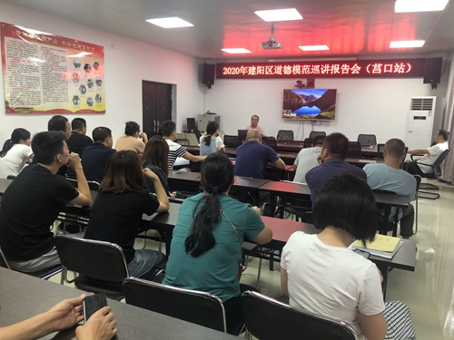 道德模范巡講莒口鎮(zhèn)專場 建陽區(qū)莒口鎮(zhèn)供圖 今年9月20日是全國第18個(gè)“公民道德宣傳日”為發(fā)揮道德模范的示范作用,進(jìn)一步推進(jìn)社會主義核心價(jià)值體系建設(shè),提升公民道德素質(zhì),努力營造宣傳道德模范、崇尚道德模范、學(xué)習(xí)道德模范、爭當(dāng)?shù)赖履7兜臐夂穹諊枀^(qū)啟動道德模范巡講報(bào)告會活動。 9月17日,建陽區(qū)道德模范巡講首場報(bào)告會在莒口鎮(zhèn)召開,巡講活動采取現(xiàn)場講述和現(xiàn)場交流的方式進(jìn)行。南平市道德模范、莒口鎮(zhèn)黨群工作者包天辰同志及福建好人村醫(yī)俞柳青同志(近80高齡,由焦嵐村文職工作者劉曉紅同志代表)受邀參加報(bào)告會,為全體職工干部做事跡分享報(bào)告。他們用質(zhì)樸的語言、詳實(shí)的事例充分展示了道德模范平凡而又光輝的形象,為大家上了一堂生動的道德教育課,廣泛地動員干部職工支持和參與道德實(shí)踐活動。