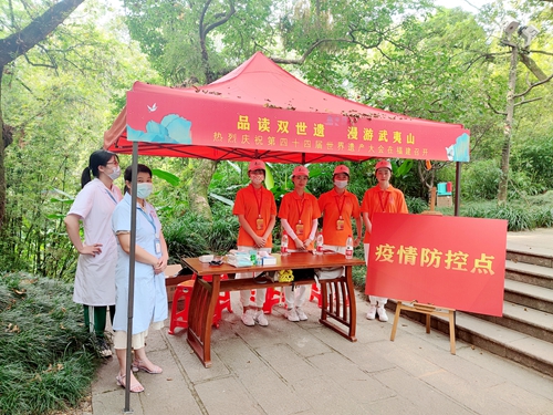 武夷山市青年志愿者助力“品讀雙世遺 漫游武夷山”系列活動 第44屆世界遺產大會召開之際,作為世遺大會“一城七線”中的重要一線,福建省唯一的世界文化和自然雙遺產地,武夷山市開展“品讀雙世遺 漫游武夷山”系列活動。為讓此項活動順利開展,武夷山市積極發動并組織全市各機關單位青年干部、黨群工作者和武夷學院學生組成54名青年志愿者,開展文明引導、秩序維護、環境保潔、領用水登記等志愿服務活動。