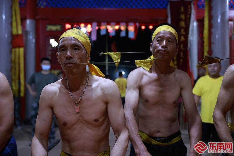 銅針穿腮 徐華山/攝 順昌齊天大圣信俗文化源遠(yuǎn)流長(zhǎng),因特殊的地理環(huán)境和自古崇拜靈猴習(xí)俗,不斷演變形成獨(dú)具特色的齊天大圣信俗文化,在元明時(shí)期曾鼎盛一時(shí),經(jīng)田野考察發(fā)現(xiàn),全縣至今仍保存齊天大圣、通天大圣祭壇、廟宇等遺存遺址106處,及形式多樣的祭祀活動(dòng)。因順昌齊天大圣信俗文化起源悠遠(yuǎn)、遺存豐富、史料翔實(shí)、傳承完整,影響廣泛。順昌被海內(nèi)外信眾奉為齊天大圣祖地,被中國(guó)西游記文化研究會(huì)授予齊天大圣文化研究中心;2011年12月,順昌齊天大圣信俗被福建省人民政府列入省級(jí)非物質(zhì)文化遺產(chǎn)名錄。