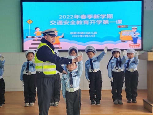 邵武市曬口幼兒園開展新學期交通安全教育開學第一課 為了讓幼兒從小養成遵守交通規則的好習慣,增強交通安全意識,提高自我防護能力。2月22日上午曬口幼兒園邀請邵武公安交警大隊“熊熊說交通”的熊柳泉警官為孩子們開展2022年春季新學期交通安全教育開學第一課。 活動中,熊警官結合幼兒特點,通過觀看視頻、現場問答、學習交通手勢操等形式,向小朋友們講解了“如何安全過馬路”“如何看懂信號燈”“乘坐公共汽車時應該注意事項”,通俗易懂的話語,不僅引發了孩子們濃厚的學習興趣,也將文明交通出行的種子播撒在孩子們心間。