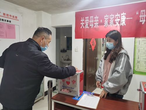 愛心居民張先生正在捐款。 4月25日,這天一早,張先生專程來到嚴羽社區(qū),將300元愛心的捐款投放到募捐箱中,這已經(jīng)是他連續(xù)第三年主動為社區(qū)“母親健康1+1”捐款了。說起為捐款的初衷,張先生說道:“我從小就沒有母親,所以看到關(guān)愛母親的活動,我格外感觸,希望想盡一份自己的心意。” 近日,通泰街道嚴羽社區(qū)響應上級婦聯(lián)的“關(guān)愛母親·家家安康”為主題的母親健康1+1公益募捐活動,由社區(qū)婦聯(lián)牽頭,通過在職黨員微信群、居民群等形式發(fā)起捐款倡議,黨員們慷慨解囊,自發(fā)為貧困母親捐款,奉獻自己的一份愛心,為救助“兩癌”貧困母親貢獻一份力量。 截至目前,共向轄區(qū)各界愛心人士籌集善款2000余元,活動還在火熱進行中。下一步,社區(qū)婦聯(lián)將加大“兩癌”患病婦女人數(shù)摸底工作、普及婦女“兩癌”防治知識,切實提高轄區(qū)婦女保健意識和健康水平。(邵武市通泰街道嚴羽社區(qū) 圖文/黃美華) |