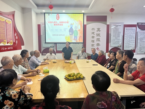活動現場 張春 攝 為弘揚中華民族尊老、愛老、敬老的傳統美德,大力營造尊老孝親濃厚氛圍,同時豐富老年群眾的精神文化生活。9月29日,三里亭社區攜手愛心商家銳光眼鏡店邀請轄區高齡獨居老人開展“濃情九月九,關愛伴夕陽”重陽茶話會活動。 “1、2、3……”輕松活躍的“報數”小游戲,拉近了老人之間的關系,也拉開了茶話會的序幕,游戲歡樂有趣,氣氛熱烈,老人們發自內心的歡笑聲和喝彩聲此起彼伏,活動氛圍變得高漲起來。隨后,社區為老人們播放經典黃梅戲《五女拜壽》精彩選段,看老戲憶往昔,老人們一邊看戲一邊品嘗瓜果,時不時還討論著戲劇情節,幸福的笑容洋溢在每位老人的臉上。最后,社區為現場老人送上節日慰問品,并來到幾戶行動不便的高齡老人家中與他們親切交流,詳細詢問老人的身體、生活情況,送上慰問品和節日問候。 “社區每年都以不同方式為我們過重陽節,讓我們這些獨居老人感受到了社區濃濃的關愛之情,情濃意更深。”一位老人感慨地說道。(通泰街道三里亭社區:圖\文 張春) |