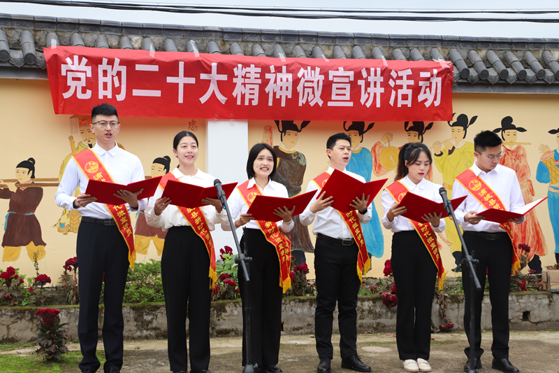 微宣講員朗誦詩歌《黨的二十大之歌》 浦城縣融媒體中心供圖 畬民鐘仕全表示:“今天采用民族的畬語畬歌來宣傳黨的二十大精神,我覺得意義非同尋常。畬族是熱愛歌舞的民族,這樣的形式讓黨的二十大精神更加‘好聽’、更深入人心,體現(xiàn)了黨和國家對(duì)少數(shù)民族的關(guān)心關(guān)愛關(guān)懷,也讓我更堅(jiān)定了感黨恩、聽黨話、跟黨走的信心和決心。” 近期,浦城縣新時(shí)代文明實(shí)踐中心組織宣講志愿者深入田間地頭,開展多形式、多元化、深層次宣講,用最“接地氣、冒熱氣、揚(yáng)正氣”的“理論+文藝”作品宣傳,把黨的二十大精神、鄉(xiāng)村振興戰(zhàn)略、鄉(xiāng)村發(fā)展故事宣傳到基層,統(tǒng)一思想,凝心聚力,為鄉(xiāng)村振興注入強(qiáng)大精神動(dòng)能。(浦城縣委文明辦 浦城縣融媒體中心 林薇 柳浪漫) |