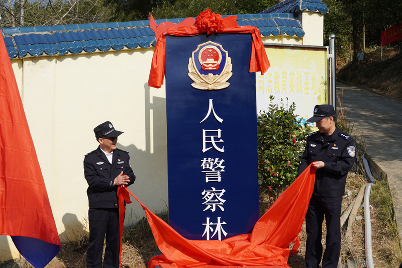 揭牌儀式 3月10日上午,南平市、區兩級公安機關在建陽區莒口鳳凰山舉行“人民警察林”揭牌儀式。 據悉,“人民警察林”建設是塑造山明水秀“生態美”的一大舉措,是推動建陽區高質量跨越發展、護航生態文明建設的一大舉措。建陽區副區長、公安局長張朝暉在致辭時指出,全體同志要以設立“人民警察林”為契機,不斷深化機制建設,形成生態文明建設的強大公安力量,成為塑造“生態美”的實踐者、推動者,為守護好閩北綠水青山、藍天凈土持續奮斗;要堅定不移貫徹新發展理念,把綠色發展理念融入公安工作全過程各方面,堅決扛起新時期森林警察職責使命,自覺做生態文明建設的忠實踐行者,為打造人與自然和諧共生現代化先行地貢獻公安力量;要勇擔當善作為,凝心聚力推進森林公安工作新發展,答好生態文明建設這一必答題,實現環武夷山國家公園保護發展帶生態環境資源保護工作提質增效。 南平市公安局黨委委員、政治部主任何根啟向辛勤守護環武夷山國家公園保護發展帶、護航閩北生態文明建設的全市公安民警致以親切的問候。他強調,市區兩級森警部門民警齊聚于此舉行“人民警察林”揭牌儀式,要深刻領會習近平總書記強調的“青山綠水是無價之寶”精神,抓牢用好“人民警察林”這個載體和紐帶,進一步加強溝通協調,形成工作合力,加大生態環境保護力度,依法嚴厲打擊破壞森林和野生動植物資源違法犯罪行為;充分發揮黨建教育基地、普法宣傳基地、實踐活動基地、研學培訓基地等“四個基地”作用,深入推動環武夷山國家公園保護發展帶生態環境資源保護再上新臺階,為助推全市“好風景”走向“好經濟”、邁向“好生活”貢獻公安力量。