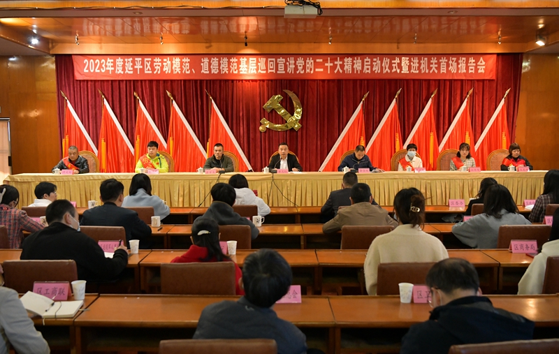 2023年度延平區勞動模范、道德模范基層巡回宣講黨的二十大精神啟動儀式暨進機關首場報告會 3月14日上午,延平區新時代文明實踐中心、區委文明辦、區總工會聯合舉辦2023年度延平區勞動模范、道德模范基層巡回宣講黨的二十大精神啟動儀式暨進機關首場報告會,特別邀請五位勞動模范、道德模范、身邊好人,結合自己學習黨的二十大精神的心得,講述工作、生活中的感悟。延平區文明委副主任、區政協副主席黃志紅參加并講話,區委文明辦、區總工會以及各級文明單位、基層工會代表參加此次報告會。 宣講會指出,各級文明單位、基層工會要深入貫徹落實黨的二十大精神,推動實施省委“深學爭優、敢為爭先、實干爭效”行動,堅定不移推動“好風景”走向“好經濟”、邁向“好生活”,充分發揮先模人物的引領和帶動作用,為文明城市創建,推進延平“二次創業”,奮力打造福州都市圈門戶城市,提供豐潤的道德滋養和強大精神力量。