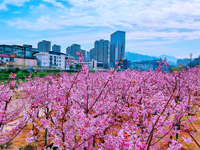 政和城區(qū)渡頭洋櫻花盛開。曾大龍 攝 花化彩化美起來 前不久,政和城區(qū)渡頭洋河畔小公園500多株櫻花競相開放,吸引不少市民來此賞花拍照,一夜之間這里成為“網(wǎng)紅打卡地”。這是繼2022年春節(jié)塔山公園七彩游步道成為“網(wǎng)紅打卡地”之后,政和給群眾帶來的又一個驚喜。 “這里曾經(jīng)亂石成堆,到處是垃圾,夏天臭氣熏天、蚊蟲很多。”家住附近的張先生說,后來在政府的支持下,修建了河邊棧道,建設(shè)了河濱公園,年前種植了這些櫻花,家門口成了花園。 這是政和縣城市管理局實施規(guī)模化花化彩化,扮靚城市的一個縮影。 “去年,我們引進(jìn)了福建省春天生態(tài)科技股份有限公司,對城區(qū)約50萬平方米的園林綠化實行市場化運(yùn)營管護(hù),園林綠化管護(hù)水平得到大幅提升。”政和縣城市管理局園林服務(wù)中心負(fù)責(zé)人魏勇說。 近年來,政和縣城市管理局圍繞建設(shè)宜居美麗的園林城市目標(biāo),對城區(qū)實施全域規(guī)模化花化、彩化改造提升,構(gòu)建以主城區(qū)花化、彩化為核心的規(guī)模化花化、彩化體系,對城市周邊、高速和鐵路入城口、三溪六岸、城區(qū)重要路段、主要公園、A級景區(qū)、轄區(qū)內(nèi)鄉(xiāng)村振興示范帶等區(qū)域?qū)嵤┮?guī)模化花化、彩化,主要種植黃山欒樹、銀杏、桂花、紅楓、紅火箭紫薇、月季、櫻花、桃花等樹種。 “我們組織工人清除園林雜草,對不同綠化樹木進(jìn)行修剪、造型。春節(jié)期間,在市民廣場、政府廣場、高速口擺放各色花卉,營造春節(jié)喜慶氛圍,不少地方成為市民的打卡點(diǎn)。” 福建省春天生態(tài)科技股份有限公司負(fù)責(zé)人范開松介紹,下一步,公司將按規(guī)模化花化彩化的要求,分片種植不同品種的花卉,逐步實現(xiàn)一年四季都有花。
