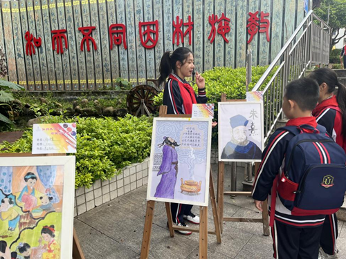 南平市朱子文化講壇負(fù)責(zé)人伊劍平受邀來(lái)到南平實(shí)小,給孩子們講述朱熹的生平經(jīng)歷。南平實(shí)驗(yàn)小學(xué)供圖 “演·朱子”——穿越時(shí)空看朱子 品“源頭活水”,看“姹紫嫣紅”。四月,南平實(shí)驗(yàn)小學(xué)在四所校區(qū)共同開展以“弘揚(yáng)朱子文化,書香潤(rùn)澤童心”為主題的讀書節(jié)活動(dòng),以孩子們喜聞樂(lè)見的形式,將朱子文化融入孩子的學(xué)習(xí)生活之中,引領(lǐng)孩子們感受朱子文化魅力。 南平實(shí)小文體校區(qū)六年級(jí)(5)班的孩子們,自主討論將朱子求學(xué)的經(jīng)歷改編成課本劇,拿到了今年讀書節(jié)的一等獎(jiǎng)。故事講的是朱熹、陸九齡和陸九淵在鵝湖寺展開的理學(xué)、心學(xué)之辯,史稱“鵝湖之會(huì)”。