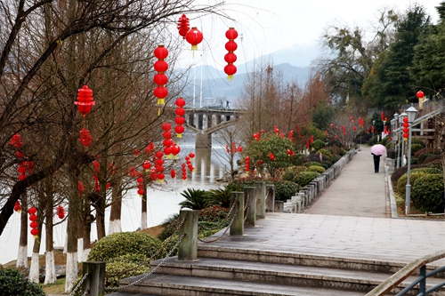 江濱親水漫道燈籠 浦城縣融媒體中心供圖 一排排花卉、一盞盞燈籠、一串串彩燈……不知不覺間,春節已進入“倒計時”,浦城縣的大街小巷張燈結彩,各式各樣的裝扮迎來了新年新氣象,整個城市洋溢著喜慶祥和的節日氛圍。 日前,記者在浦城縣方志敏廣場看到,“富暖四季 福澤綿長”大花籃安裝已經完成。放眼望去七彩的花籃配上紅彤彤的燈籠將廣場裝飾一新,煞是好看,引得居民紛紛拍照打卡?!芭c往年比,今年我們在方志敏廣場、安華圓弧增添了花籃裝飾,還在高速路口、大圓弧等處裝扮上龍元素。同時,今年設計懸掛的燈籠和彩色燈組造型各異,視覺效果會比往年好。目前,裝扮工作已經基本完成,迎接著春節的到來,營造歡樂喜慶、文明祥和的節日氛圍。”浦城縣園林中心主任祝文忠說。 據了解,此次氛圍營造以“?!蔽幕癁橹饕O計元素,結合浦城功能劃分人流分布開展春節美化、亮化,通過“點”上精心布設,“線”上精細打造,力求“出彩、出新、出景”。在公園、廣場懸掛春字燈籠6000余個,圓形燈籠約3200個,其他造型燈籠約2510個,美城造型小龍人21個,為市民營造既濃厚又接地氣的“年味”。同時,在主要道路、公園廣場及外圍懸掛詩詞文化氛圍燈條275條,更換種植城區內近300組花箱時令花卉瓜葉菊、一串紅、杜鵑、石竹等多個品種鮮花共計約2.2萬盆,各街道預計500棵樹木亮化等。