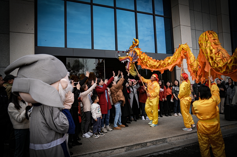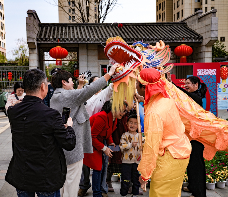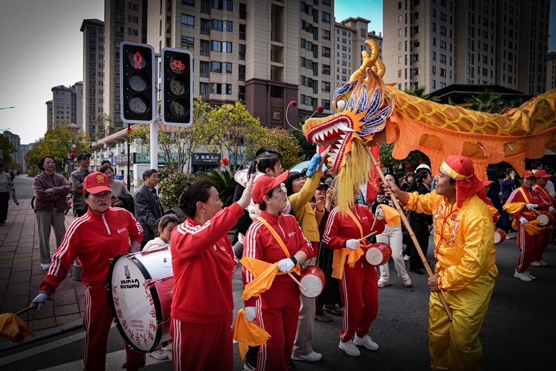 18日,由南平市文化和旅游局主辦,市文化藝術館承辦的“龍騰盛世 福見南平”——開年踩街活動在武夷新區舉行,吸引市民駐足觀看。圖為舞龍表演。劉昕宇 攝