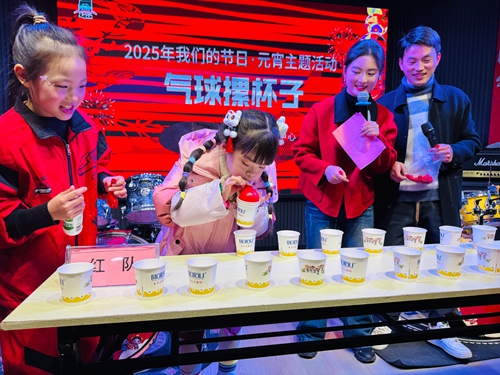 “氣球摞杯子”活動 吳月娥 攝 活動現場張燈結彩,洋溢著濃濃的節日氣氛。本次活動精心設計了三個環節,伴隨著歡快的音樂聲,首先進行的是緊張又刺激的“氣球摞杯子”比賽,孩子們需借助氣球把紙杯從起點運往終點,并將其摞成金字塔形狀。此環節既考驗了孩子們的手眼協調能力,又鍛煉了他們的耐心與細心。 隨后進行的“搶麥猜歌名”環節更是將活動推向了高潮,孩子們爭先恐后地搶答歌曲名稱或接唱下一句歌詞,現場歡聲笑語不斷,掌聲此起彼伏。