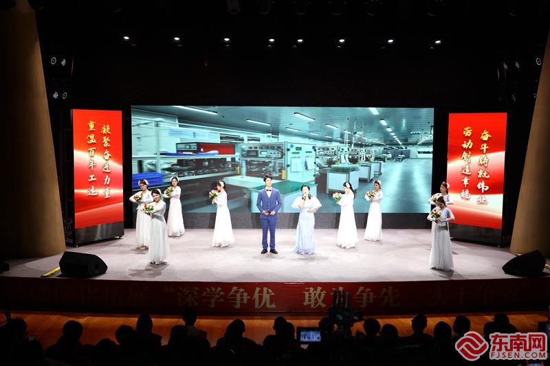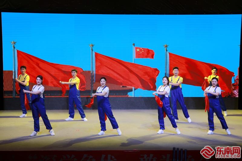 節(jié)目展演 東南網記者 肖練冰 攝 本次文藝展演共分為“致敬歲月”“致敬時代”“致敬未來”三個篇章。開場舞《勞動暢想曲》拉開展演序幕,情景誦讀《百年工運里的閩北印記》《山海為墨我作答》、職工誦讀《閩北工匠》、情景劇《工會好》、歌伴舞《中國夢·勞動美》等精彩節(jié)目接連上演。