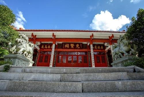 書院門樓正面為“云根書院”四個朱體大字。沿著石階往上走,書院的正門兩側(cè)的立柱題寫書法楹聯(lián):“任中兩院開教育先河,山城留典范;身后三祠念韋齋政績,百姓樹豐碑。”楹聯(lián)書法蒼勁有力,神采飛揚。牌坊底座有兩只石雕獅子,昂首挺胸,威武大氣。 先賢祠是云根書院的核心建筑之一,主殿中央“大儒世澤”的牌匾之下供奉朱森、朱松、朱子三人銅像,為書院祭祀的殿堂。內(nèi)有韋齋與政和的壁畫和文字,以及朱松撰寫的《先君行狀》、朱子撰寫的《皇考左承議郎守尚書吏部員外郎兼史館校勘累贈通議大夫朱公行狀》、朱子門人黃榦撰寫的《晦庵先生行狀》(摘錄)和宋代二十位理學家的畫像與簡介。 政和是朱子家族入閩的首站,朱子一家三代人與政和有很深的淵源。朱氏入閩展館以朱松到政和任職為主線,生動形象地展示了朱氏入閩的軌跡,以及朱松入閩的點點滴滴。朱子閣在先賢祠的后方,沿著臺階而上,是一幢二層的建筑。進入朱子閣一樓,可以看到正中懸掛著“萬世師表”的牌匾,牌匾下刻畫著“大成至圣先師”孔子的壁畫像。大殿內(nèi),還有顏子、曾子、子思、孟子四配的壁畫像,為書院講學之所。朱子閣的二樓主要懸掛著朱子三代畫像,以及收藏著中華優(yōu)秀傳統(tǒng)文化經(jīng)典的各類書籍。此處是云根書院的最高處,可以眺望政和城區(qū)全景,每當傍晚夕陽西下,紅暈的光芒匯鍍在紅墻碧瓦之上,顯得格外耀眼莊重。