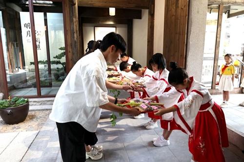 “行釋菜禮”環節 在“釋菜禮”環節,學生代表將象征美好寓意的“六禮”——芹菜、蓮子、紅豆、棗子、桂圓、肉干敬獻老師,寓意勤奮、苦心、吉祥、高中、圓滿與成才。老師則回贈《白鹿洞書院揭示》卡片,全體師生現場進行齊聲誦讀,在“父子有親、君臣有義”“博學之、審問之、慎思之、明辨之、篤行之”等經典語句中,深刻感悟儒家教育理念中修身、齊家、治國、平天下的深遠意義。 此次“朱子敬師禮”不僅是一場儀式,更是一堂生動的傳統文化教育課。通過沉浸式體驗,學生們深刻感受到尊師重道的文化內涵,增強對優秀傳統文化的認同感和歷史責任感。(松溪縣融媒體中心 范鑫琳 蔡駿翔 何詩敏 圖/文) |