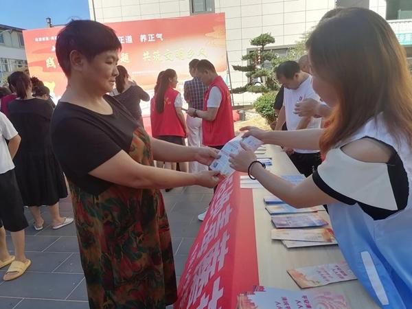 活動現場設置了移風易俗、網絡安全宣傳周,禁毒,食品、藥品安全,消防安全,民法典,社區矯正法,掃黃打非,掃黑除惡等知識宣傳臺和“文明趣味套圈圈”“文明有福大轉盤”等互動小游戲,并為群眾準備了精美小禮物,讓大家在輕松愉快的氛圍中提升文明知識。 宣講問答“聲”入人心