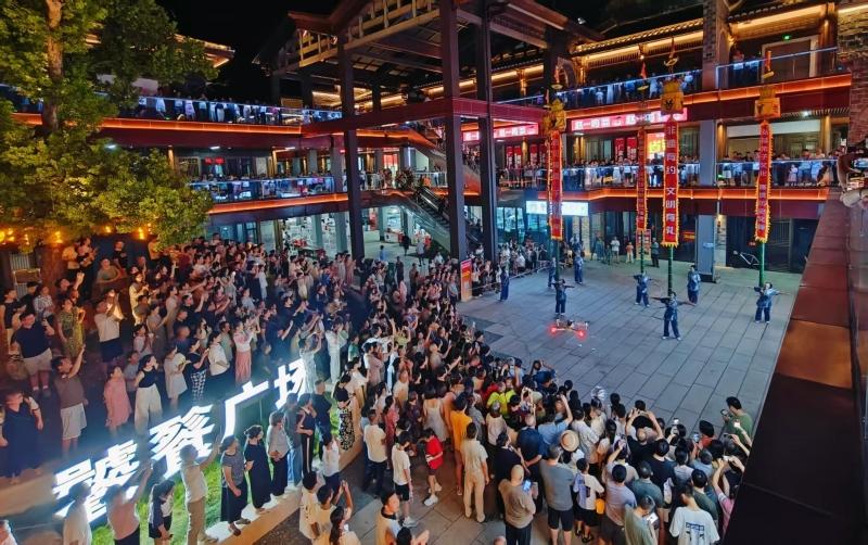 6日晚,建甌市饕餮廣場熙熙攘攘,高潮迭起的挑幡表演為中秋夜增添了無限魅力。眾多市民和游客駐足觀看,現場掌聲、喝彩聲不斷,洋溢著濃厚的節日氣氛。(閩北日報記者 盧國華 攝)