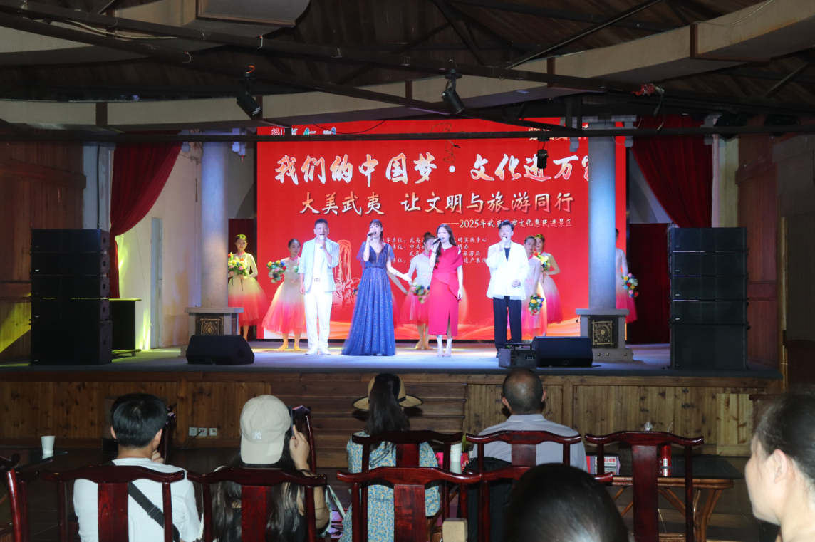 2025年武夷山市文化惠民進景區活動現場 秋光瀲滟,文旅融合譜新篇。10月1日、5日,由武夷山市新時代文明實踐中心指導,市委文明辦、市文化體育和旅游局主辦,市非物質文化遺產展演中心承辦的“我們的中國夢·文化進萬家”“大美武夷 讓文明與旅游同行”——2025年武夷山市文化惠民進景區活動,在風景如畫的武夷宮春秋館成功舉辦。 活動為市民游客奉獻了多場凝聚家國情懷與地方特色的文化盛宴。演出現場氣氛熱烈,愛國主旋律與武夷山水情完美交融。激昂的《我的祖國》《紅旗飄飄》等經典歌曲唱響時代強音,優美的《花開中國》《春日》等舞蹈舞動盛世華章;同時,獨具地方魅力的《禪茶一味》表演與《半山聽雨》古琴演奏,則讓觀眾沉浸于武夷山的茶韻詩意之中。精彩的節目編排,配合有趣的非遺問答,始終吸引著全場目光,最終在歌舞《母親是中華》的恢弘氣勢中圓滿落幕。 此次活動不僅是藝術的展示,更是文明的踐行。活動現場,志愿者們積極向市民游客發放《詩意山水,文明同行—武夷山國慶文明旅游倡議書》,倡導文明旅游新風。使“文明與旅游同行”的主題更加深入人心,讓觀眾在享受文化大餐的同時,潛移默化地接受文明的熏陶,共同構成了大美武夷一道靚麗的風景線。 本次活動成功將舞臺搭在山水之間,把文化送到游客身邊,實現了文化傳承與旅游體驗的“雙向奔赴”,為提升武夷山市文旅品質、深化精神文明建設注入了新的活力。(中共武夷山市委文明辦供稿 通訊員 王俊杰 張鑒 文/圖) |