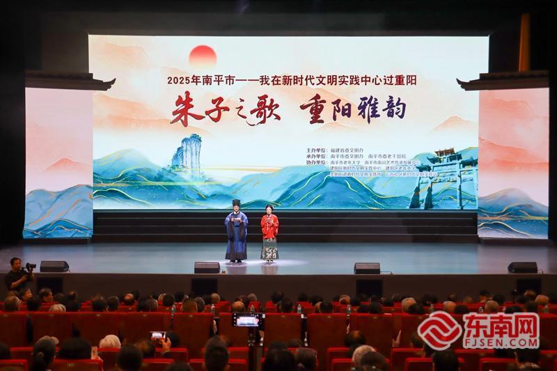 10月28日晚,2025年南平市“朱子之歌·重陽雅韻”——我在新時(shí)代文明實(shí)踐中心過重陽文藝晚會(huì)在南平市老年教育文體活動(dòng)中心劇場舉行。各界代表與市民共赴文化盛宴,借藝術(shù)形式傳承朱子文化、歡度傳統(tǒng)佳節(jié)。 |