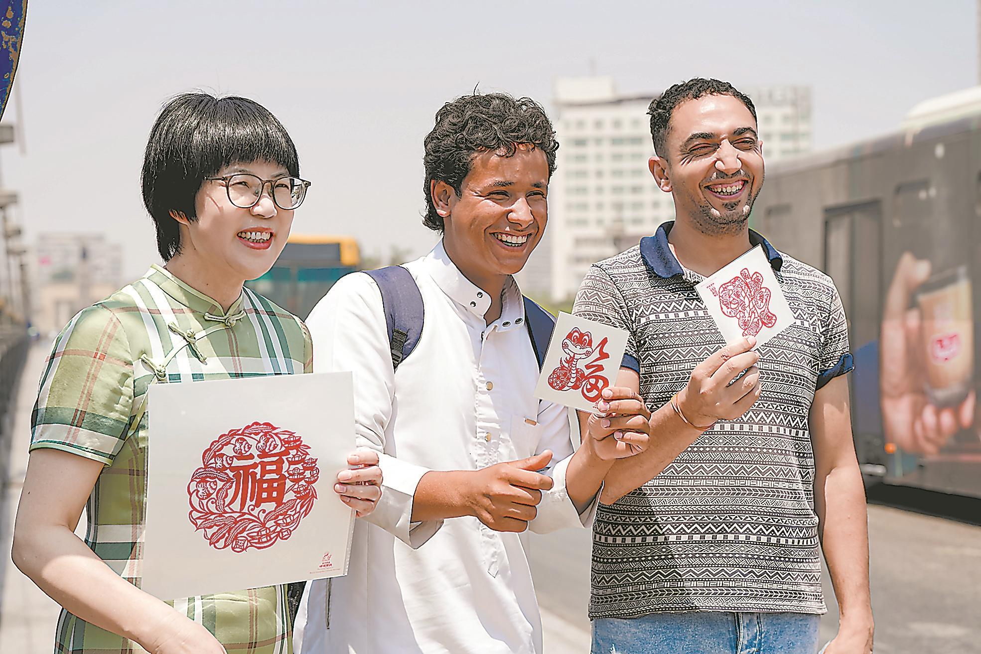 今年6月,周冬梅帶著浦城剪紙到埃及參加文化交流活動。 (受訪者供圖)